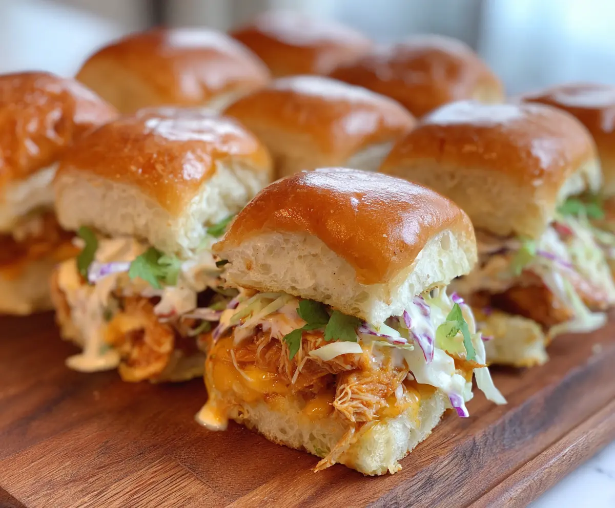 Store any leftover sliders in an airtight container in the refrigerator for up to 3 days. To keep the bread from getting soggy, you can store the chicken and slaw separately and assemble fresh sliders when you’re ready to eat.