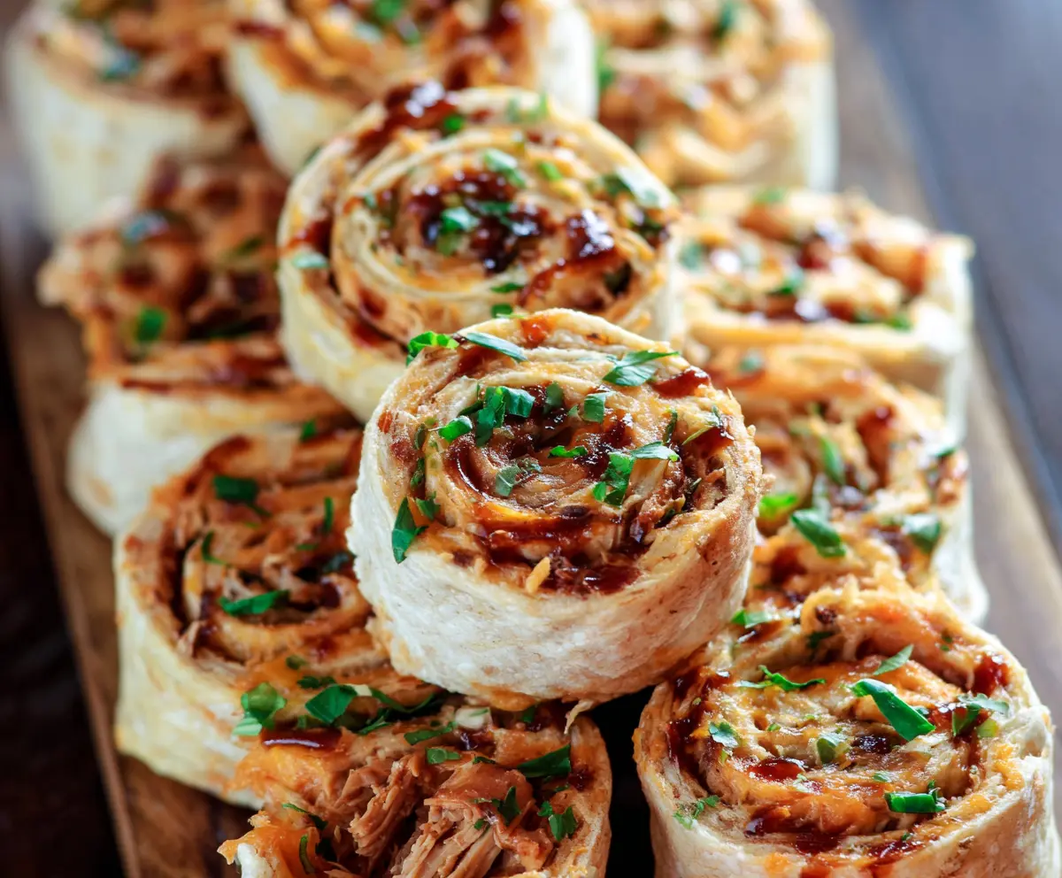 Place the pinwheels on a serving platter. If you’d like, drizzle a little extra BBQ sauce on top and sprinkle with chopped parsley or cilantro to make them look extra special.