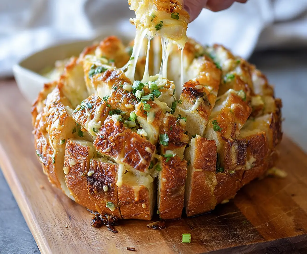Once baked, carefully remove the bread from the oven—be cautious; it will be hot. Serve immediately while warm and gooey. Pull apart pieces with your hands, and enjoy this cheesy, delicious treat with friends or family!