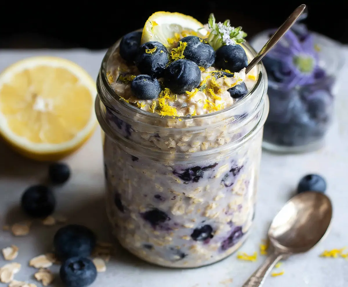 Blueberry Lemon Overnight Oats are a tasty and easy breakfast option you can prepare the night before. Just mix oats, yogurt, blueberries, and a splash of lemon for a bright flavor!