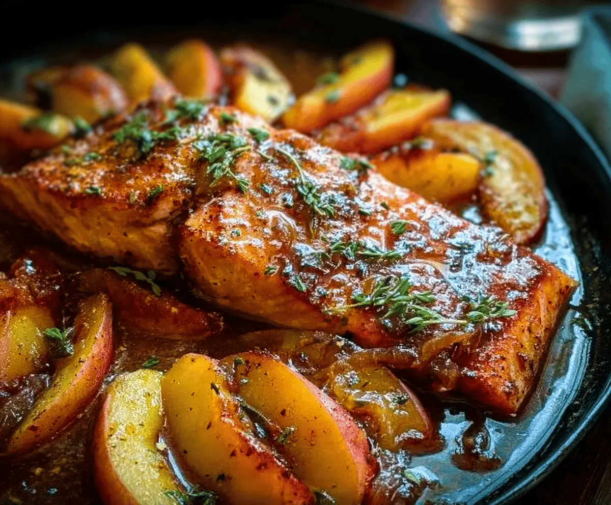 This Bourbon Peach Roasted Salmon is a tasty dish that combines sweet peaches and a splash of bourbon for a unique flavor. The salmon cooks to perfection, making it juicy and delicious!