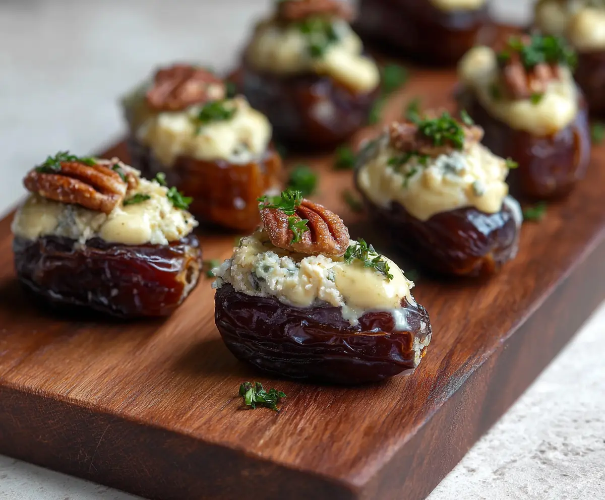 Leftover stuffed dates can be stored in an airtight container in the fridge for up to 3 days. Just reheat them in the oven at 350°F (175°C) for about 5 minutes to warm them up and soften the cheese again.