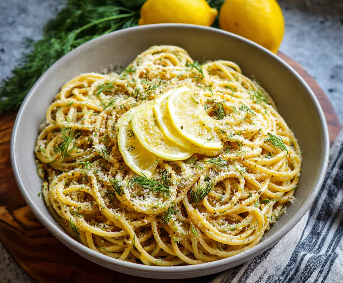 Transfer your delicious pasta to serving bowls. Don’t forget to garnish with extra fresh dill and lemon slices if you want to make it look extra pretty!