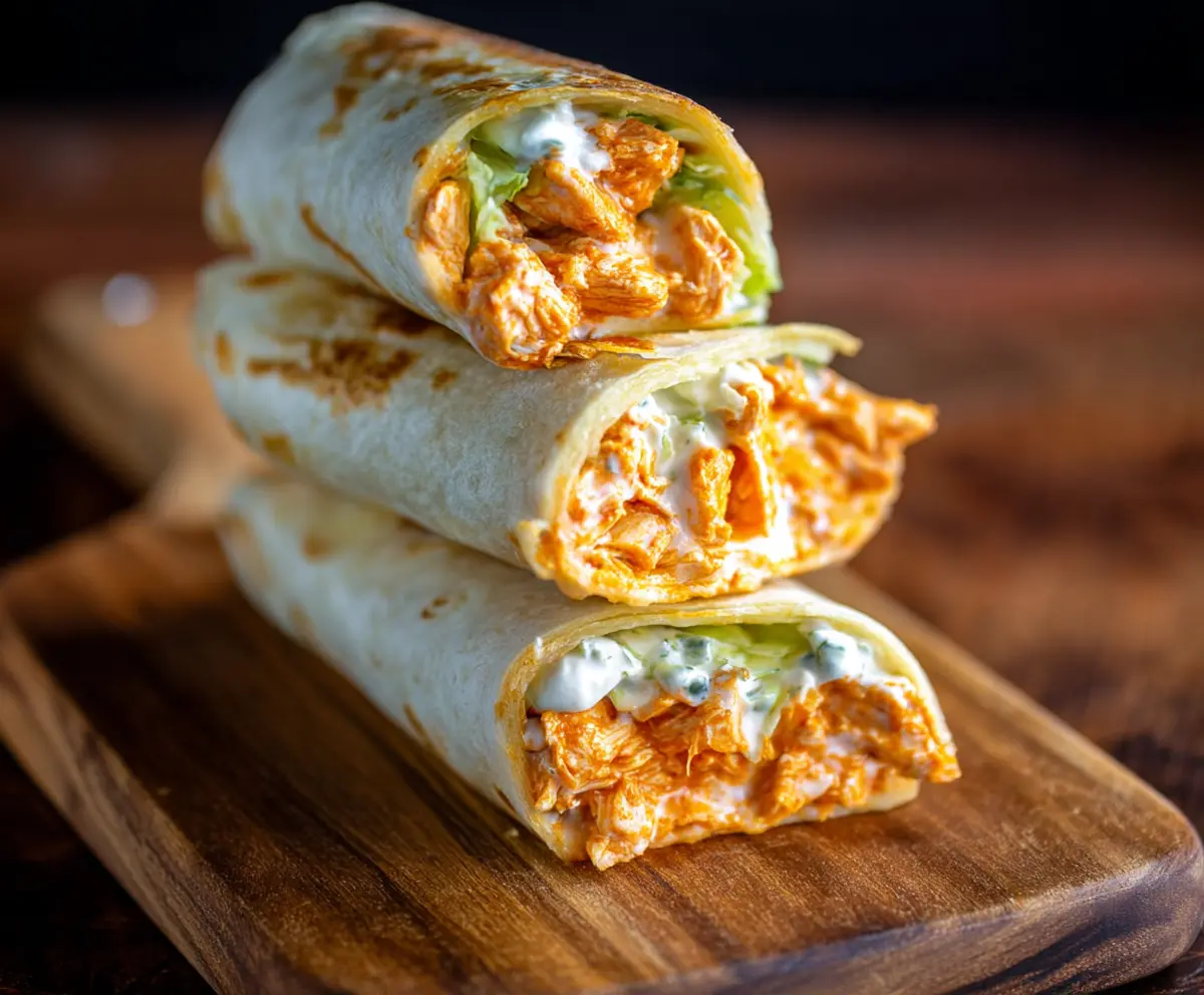 These Buffalo Chicken Wraps are a tasty mix of spicy chicken, crisp lettuce, and creamy ranch dressing, all tucked in a soft tortilla. Perfect for a quick lunch or snack!