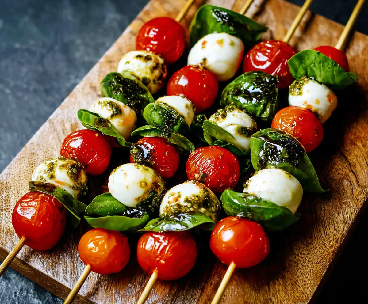 Caprese Skewers are a fresh and tasty appetizer that’s super easy to make! They combine juicy cherry tomatoes, creamy mozzarella balls, and fragrant basil leaves on a stick.