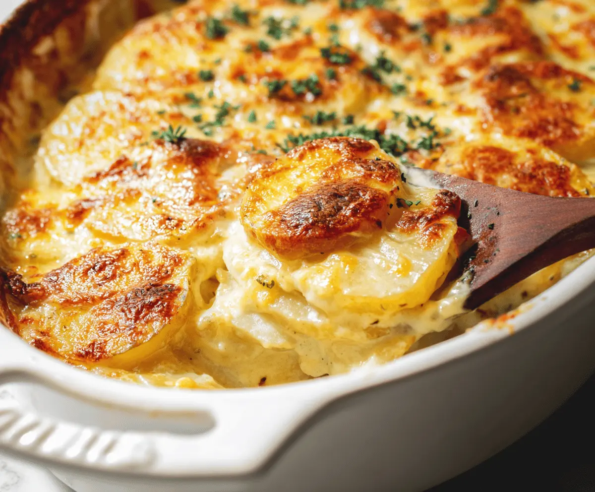 And remember to let the dish rest before serving. This helps the layers set and makes it easier to scoop! Enjoy your tasty scalloped potatoes!