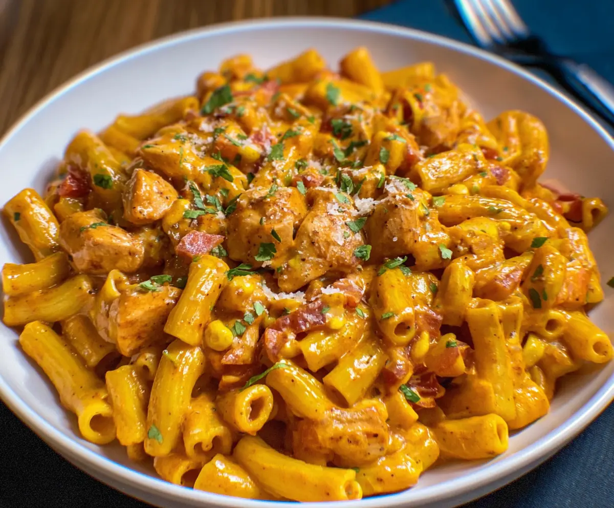 Transfer your delicious Chicken Tex Mex Pasta to a serving dish. Sprinkle some extra cheddar cheese on top, and garnish with fresh cilantro or parsley for a lovely touch. Serve hot and enjoy every bite!