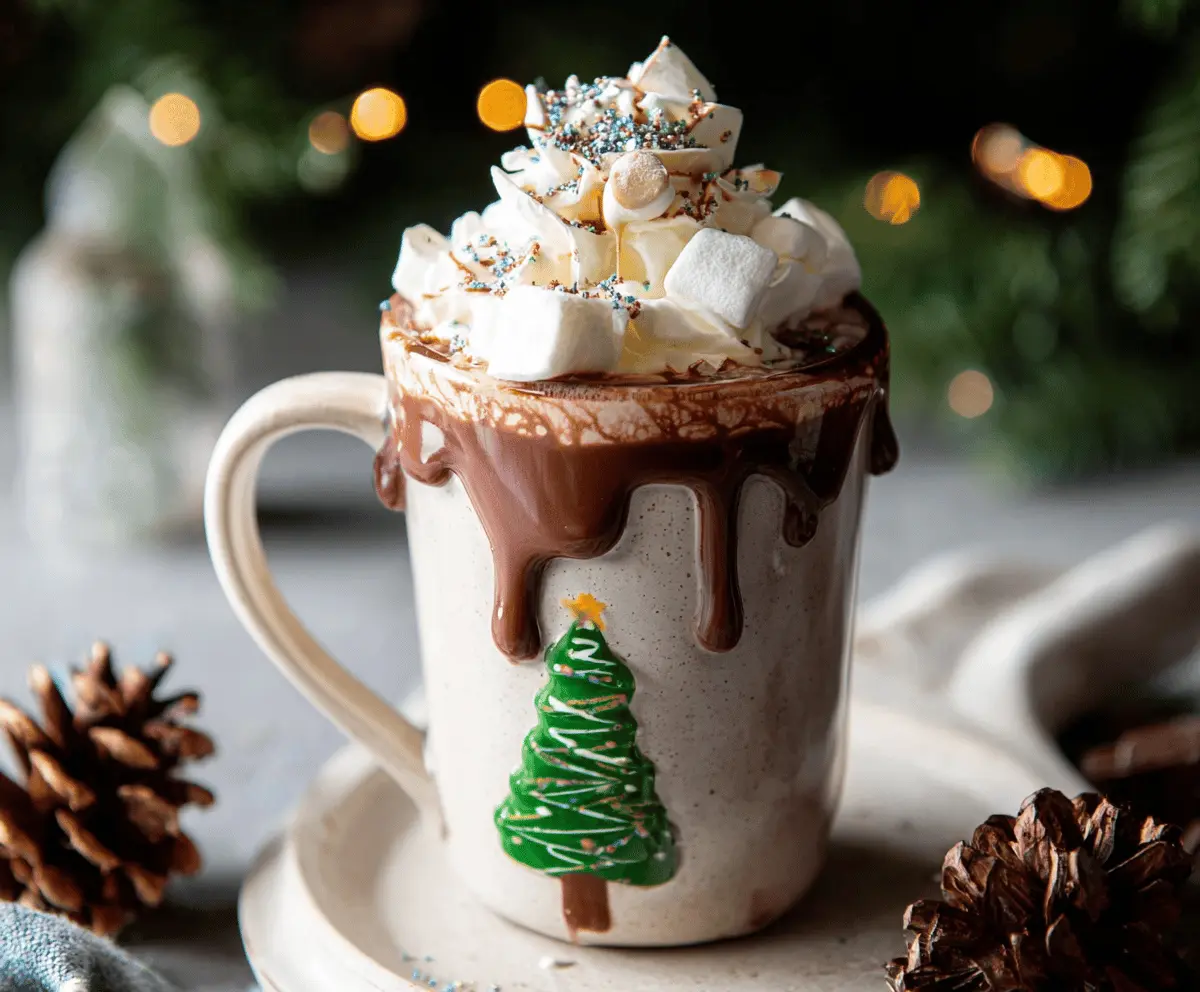 Pour your delightful hot chocolate into a festive mug, filling it up generously. Now for the fun part: top it with a mountain of whipped cream and sprinkle on those mini marshmallows—let’s make it fancy! If you’re feeling extra festive, add chocolate shavings or sprinkles for some holiday cheer!