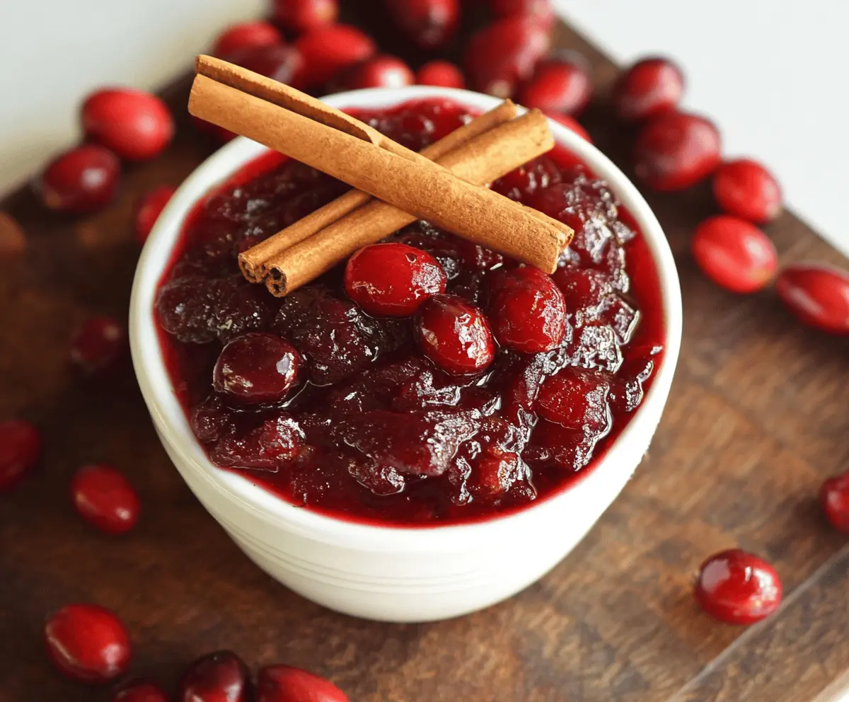 Enjoy the sweet, spicy aroma and savor every bite of this classic cinnamon cranberry sauce! 🎉