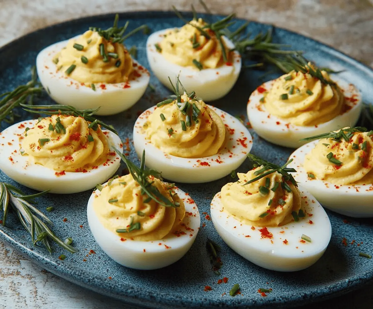 Classic deviled eggs are a tasty and easy-to-make snack. With creamy yolks mixed with mustard and mayo, they are perfect for gatherings or just a snack at home!