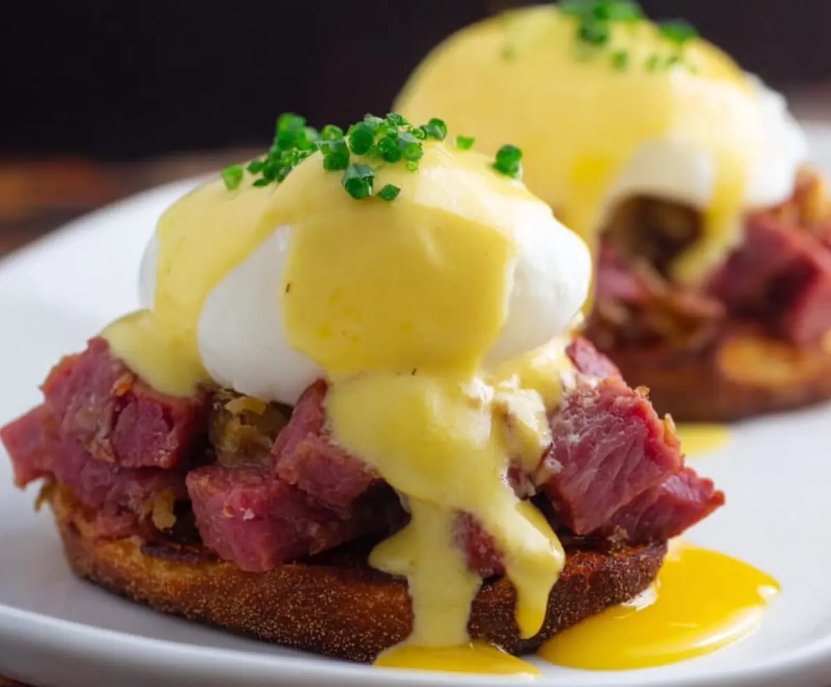 This Corned Beef Hash Eggs Benedict is a tasty twist on a classic dish! It combines crispy corned beef hash with poached eggs and rich hollandaise sauce, all on a toasted English muffin.