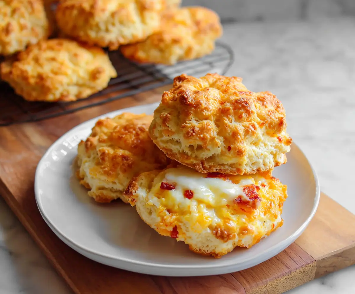 Sprinkle some extra shredded cheddar cheese on top of each biscuit for a delicious cheesy finish.