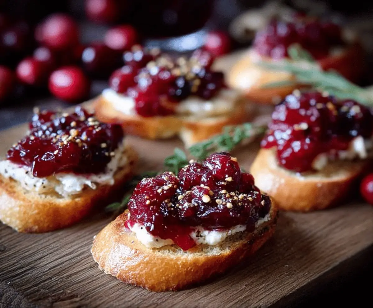 This Cranberry Chutney Crostini is a perfect mix of sweet and tangy! The crunchy bread pairs beautifully with zesty cranberry chutney, creating tasty little bites for any occasion.