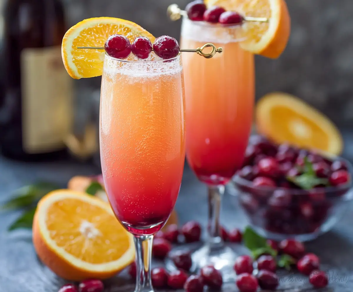 Finish off each mimosa by garnishing with a few fresh cranberries and a slice of orange on the rim of the glass. If you like, add a small sprig of rosemary for a lovely aromatic touch.