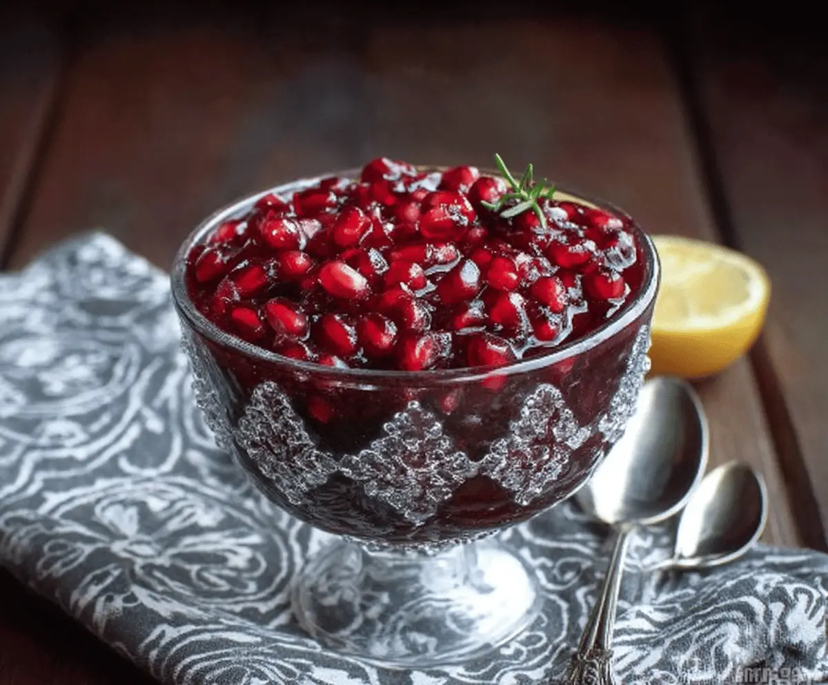 Transfer your cranberry pomegranate sauce to a serving bowl and garnish it with pomegranate arils. This adds a lovely splash of color and a pop of crunch!