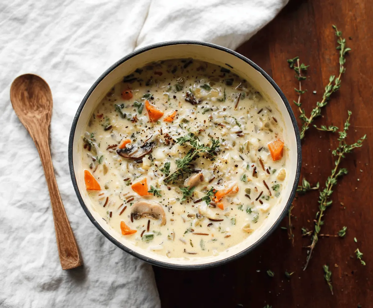 Enjoy the comforting, rich flavors of this creamy wild rice soup!