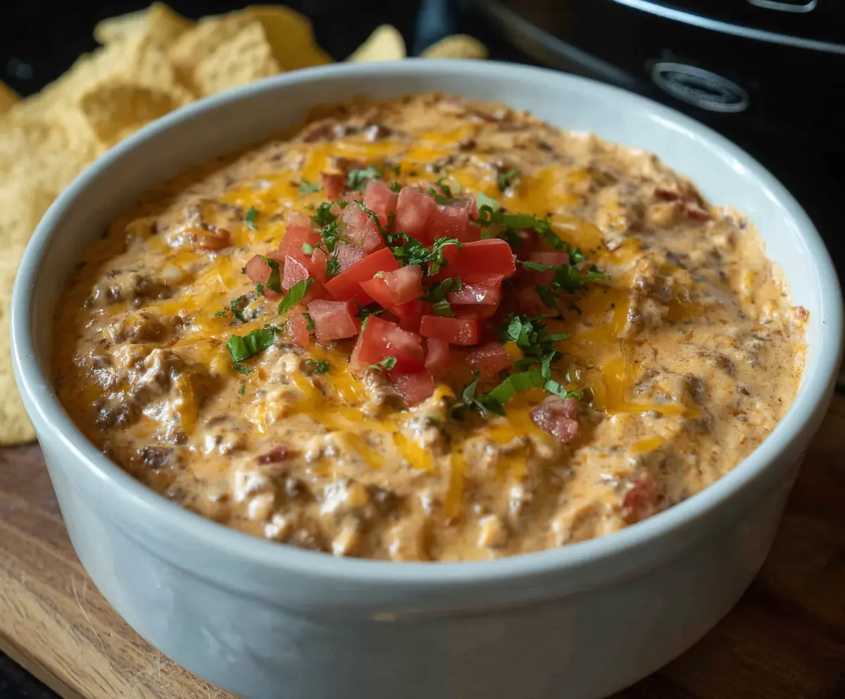 The key to a smooth dip is mixing the ingredients properly. Start by making sure your cream cheese is softened at room temperature before mixing. That way, it blends easily without lumps. Also, when cooking your beef, drain it well to avoid excess grease in your dip.