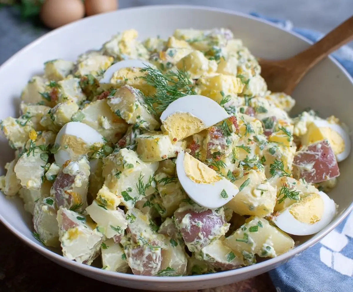 Leftover potato salad can be stored in an airtight container in the fridge for up to 3 days. Just give it a gentle stir before serving, as the dressing may thicken slightly when chilled.