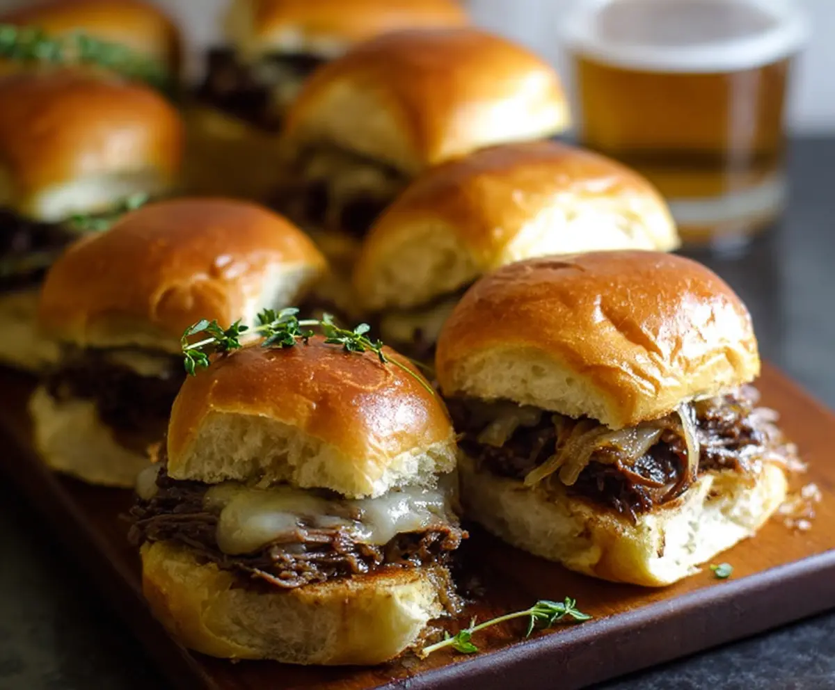 These sliders pack rich, savory flavors with the sweetness of caramelized onions and the nuttiness of Swiss cheese, all on soft, toasted buns—perfect for gatherings or simply a cozy night in!