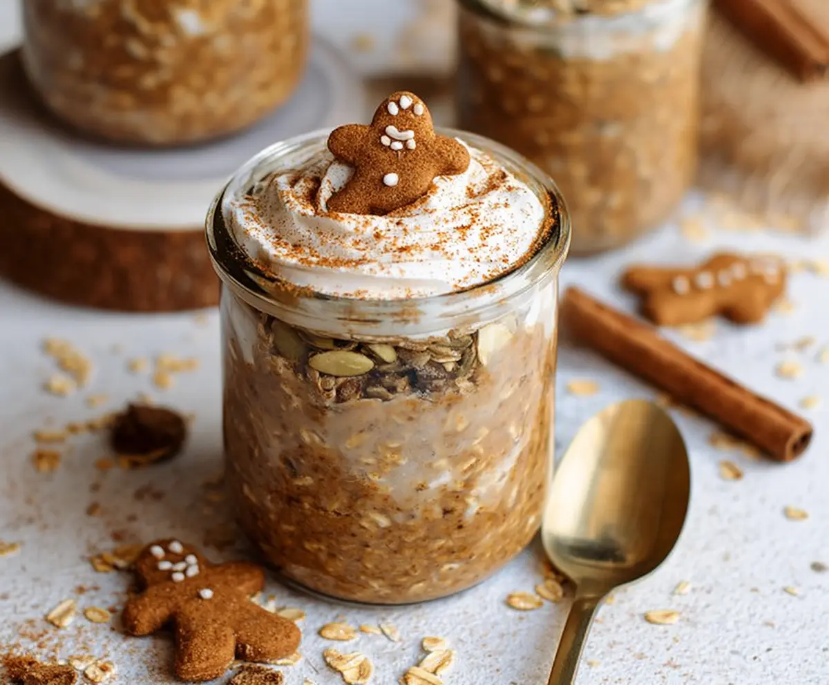 Your delicious, cozy Gingerbread Overnight Oats are ready to enjoy! Dive in and savor each bite.