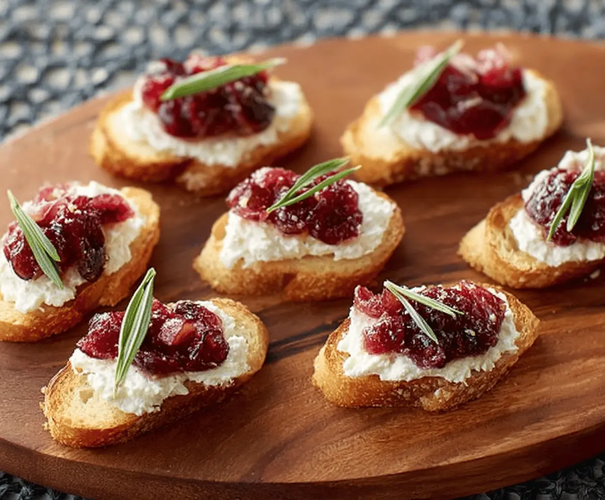 This combination of creamy, tangy goat cheese, sweet cranberry, and crispy bread makes for an elegant and delicious appetizer. Perfect for any occasion!