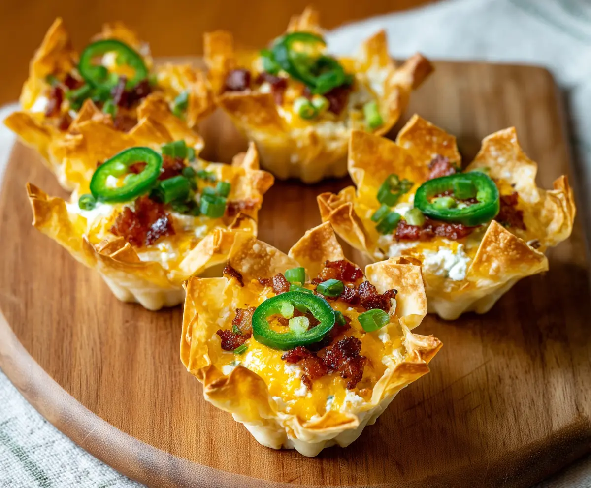 These Jalapeno Popper Wonton Cups are a spicy treat that combines crispy wonton wrappers with a creamy cheese filling. Perfect for game day or a fun snack!
