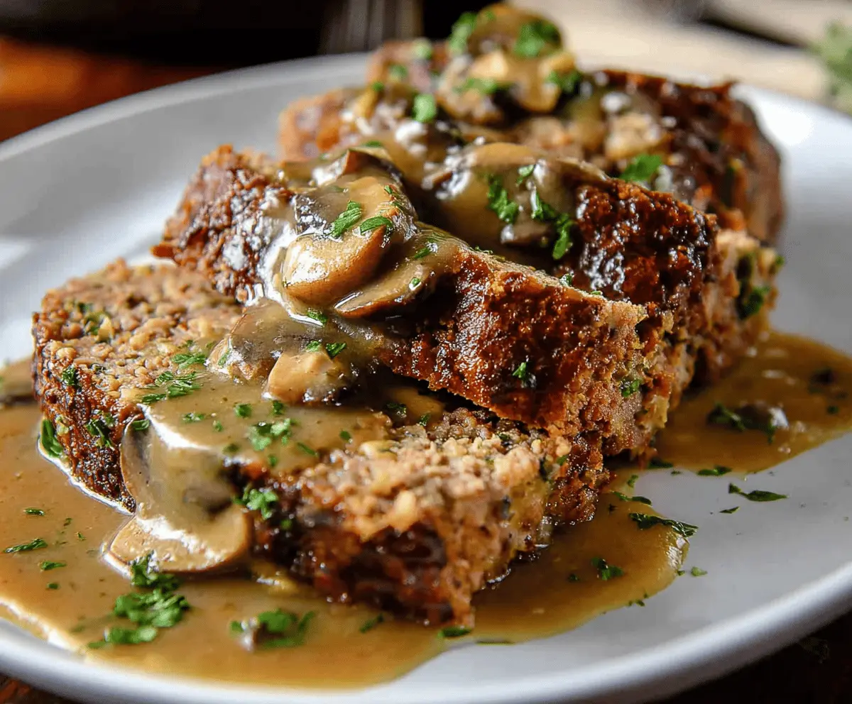 This meatloaf is cozy and comforting, topped with rich mushroom gravy that makes every bite delicious. You’ll find it hard to resist! 🍄