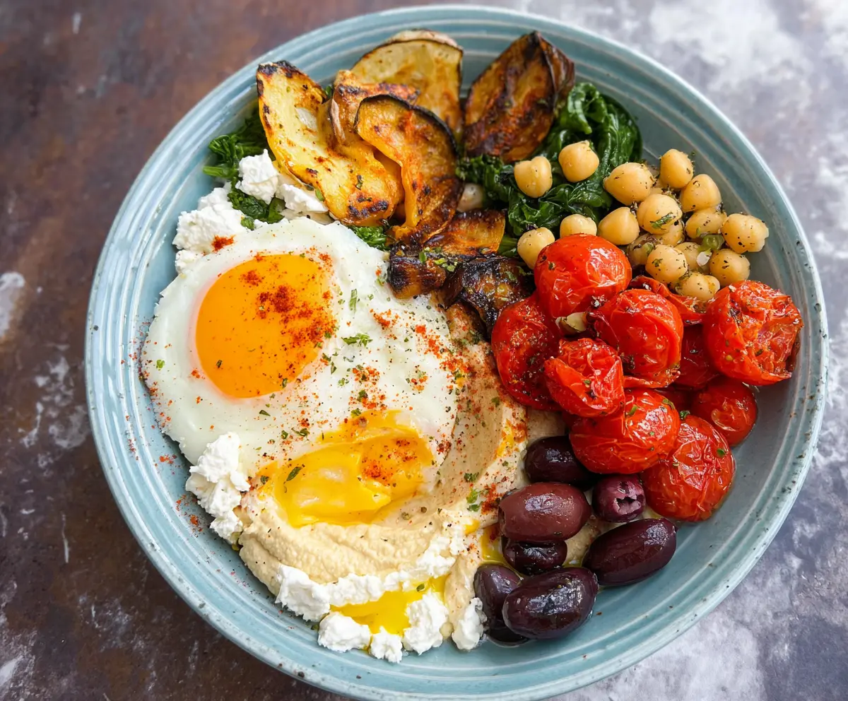 Serve this beautiful and hearty Mediterranean Breakfast Bowl immediately, and savor every delicious bite.