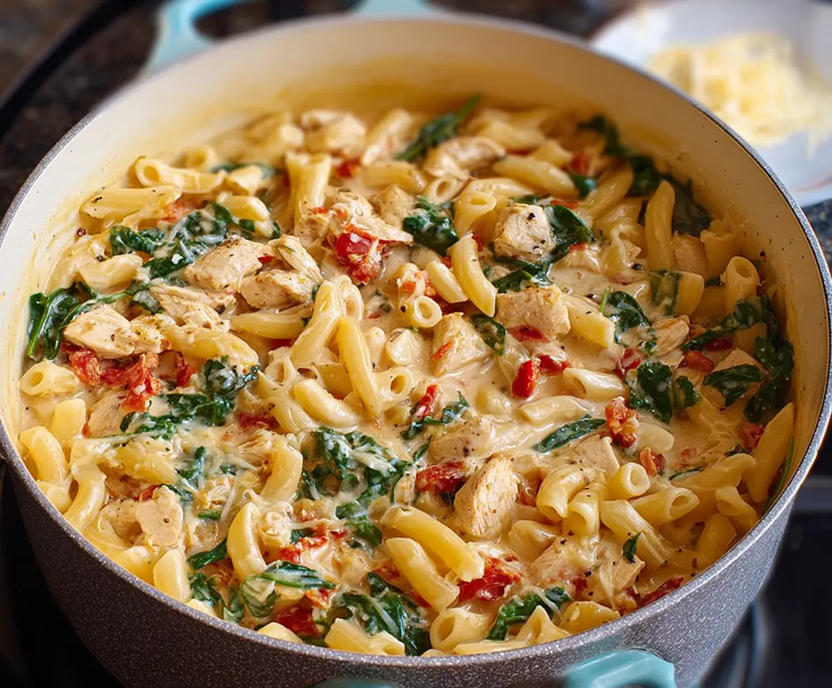 This One Pot Tuscan Chicken Pasta is a cozy meal that brings Italy to your kitchen! With chicken, pasta, and sun-dried tomatoes cooked together, it’s packed with flavor.