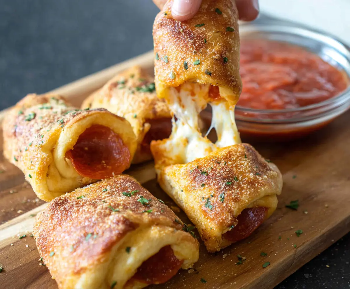 The key is to roll your crescent dough tightly around the filling, ensuring that the cheese and pepperoni stay secure inside. When baking, keep an eye on them!