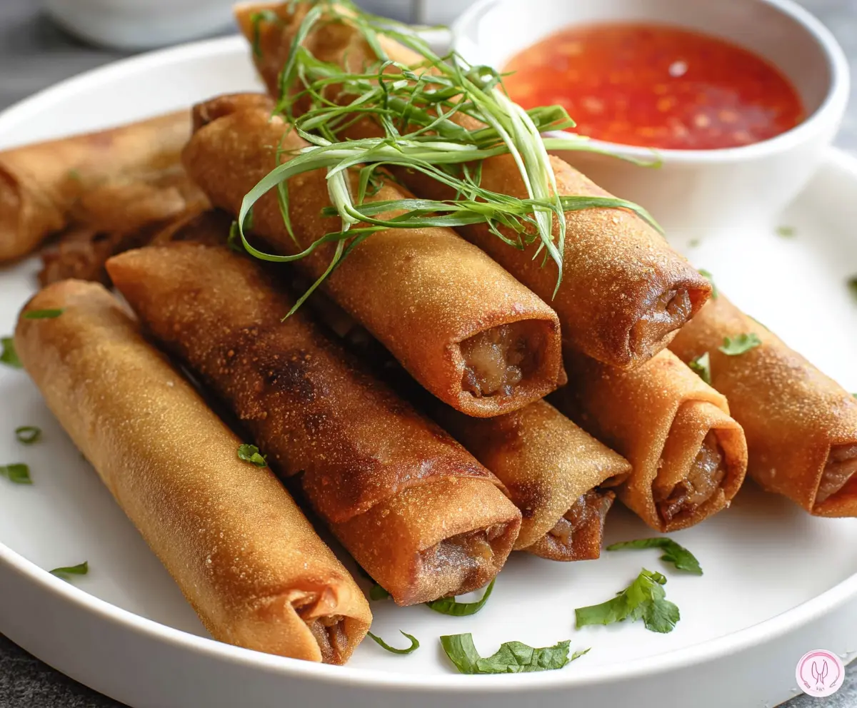 Once cooked, remove the lumpia from the oil and let them drain on paper towels to remove excess oil. Arrange them nicely on a serving plate, and if you like, sprinkle some chopped green onions on top. Serve with sweet chili sauce or vinegar with garlic for dipping.
