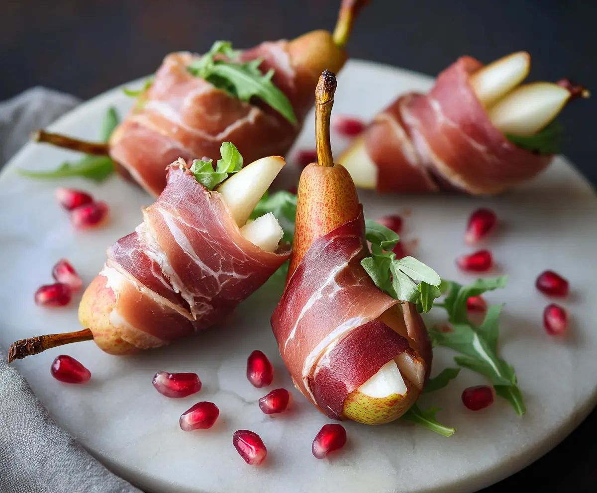 Drizzle honey or balsamic glaze over the wrapped pears. This adds a delicious touch of sweetness and a beautiful shine to the presentation.
