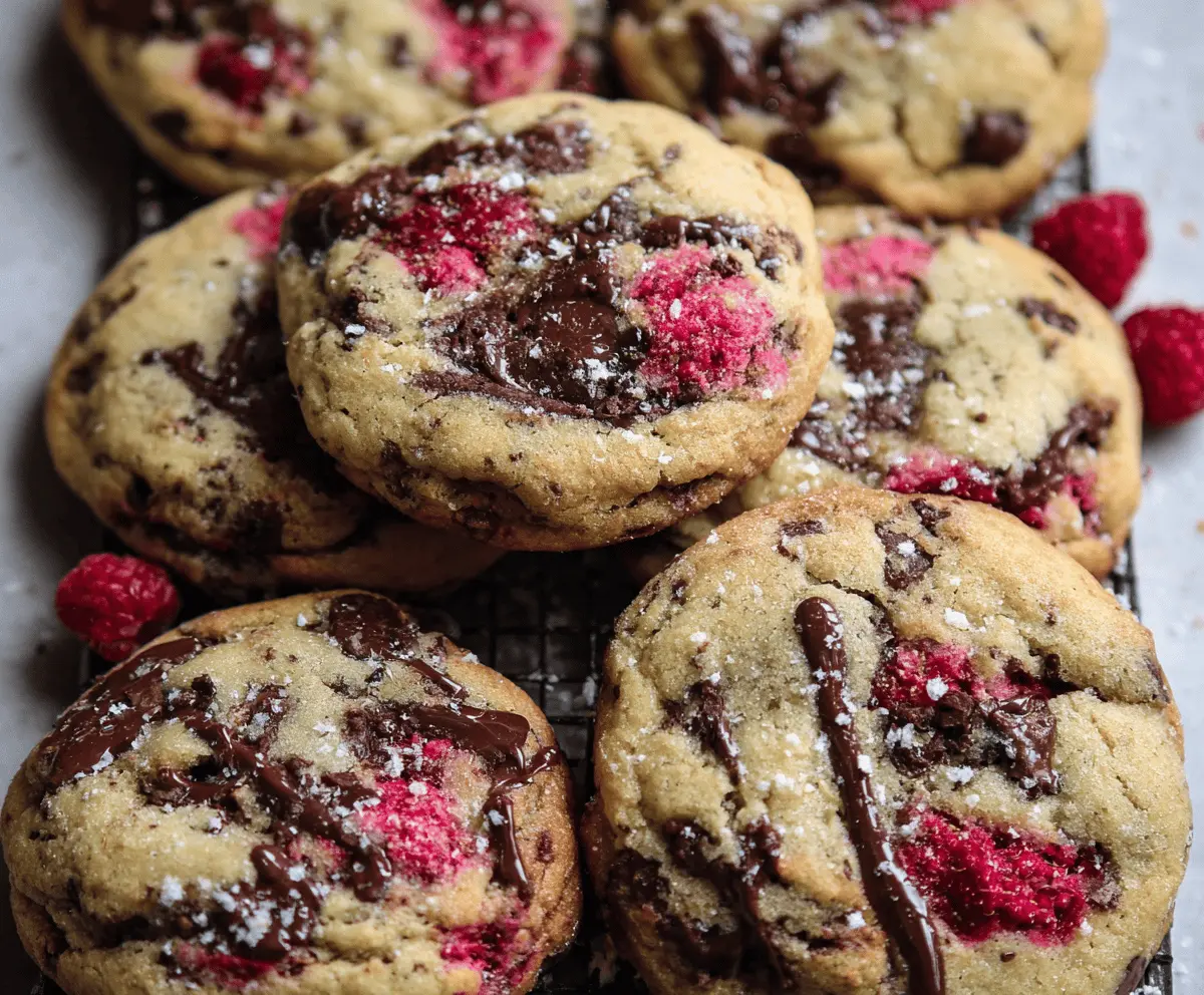 These cookies combine the tartness of fresh raspberries with the sweetness of chocolate chips for a delightful twist on a classic treat. Enjoy!