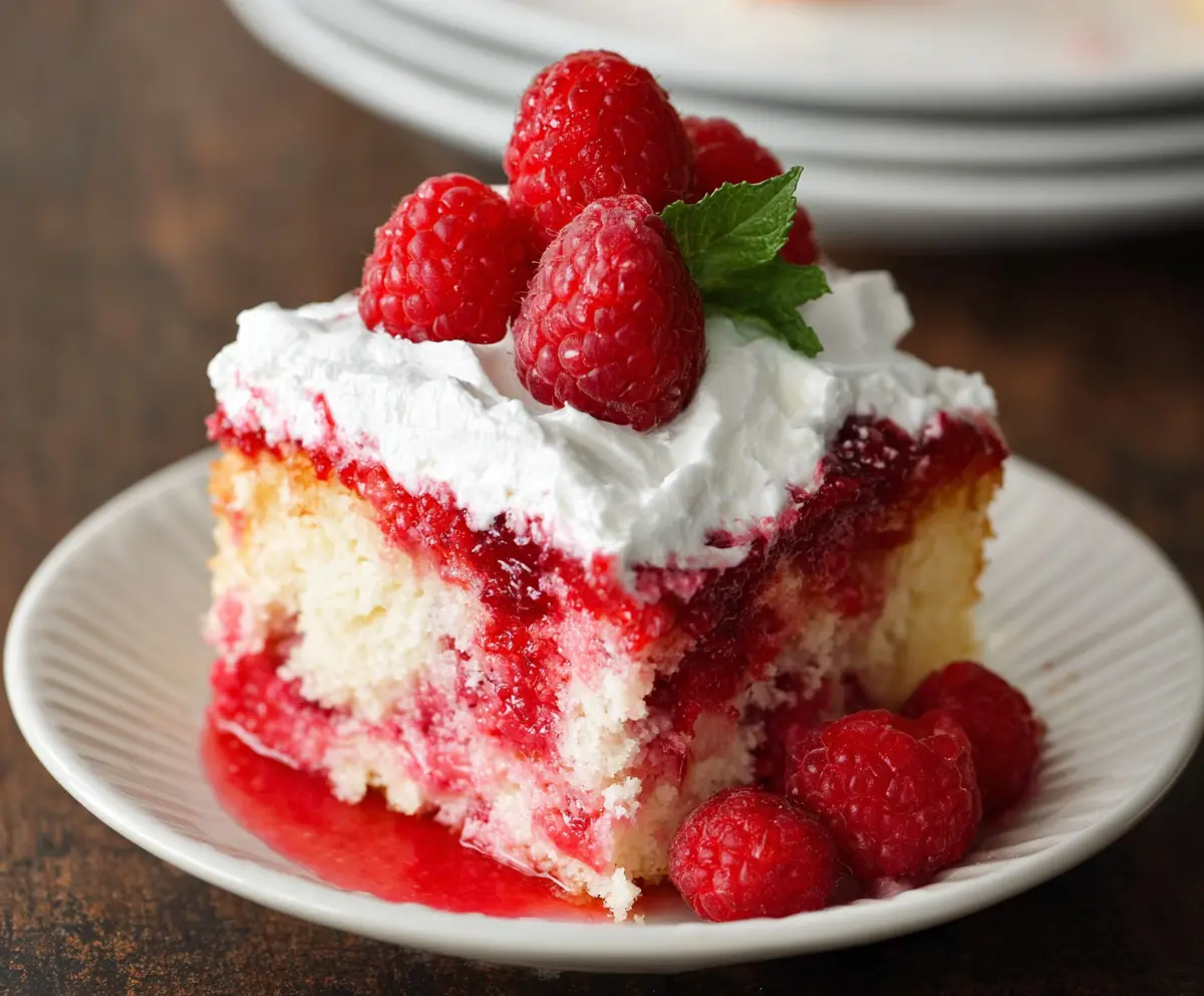 Leftover Raspberry Poke Cake can be stored in an airtight container in the refrigerator for up to 3 days. Make sure to cover it well to maintain its freshness. Just re-add some whipped cream and fresh raspberries before serving for the best taste!