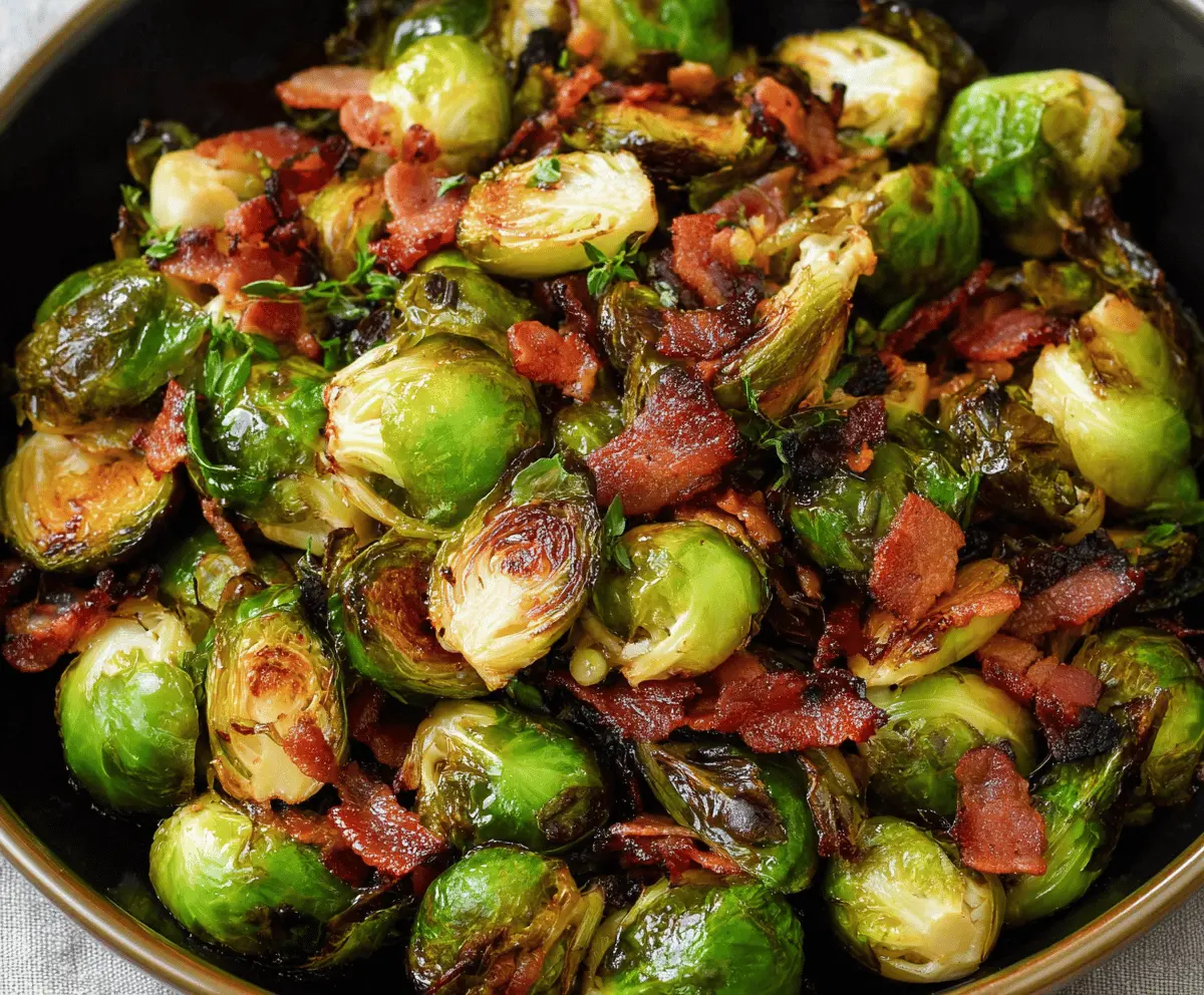These roasted Brussels sprouts with bacon are perfect for anyone who loves a tasty veggie dish! The sprouts get crispy while the bacon adds a smoky flavor.