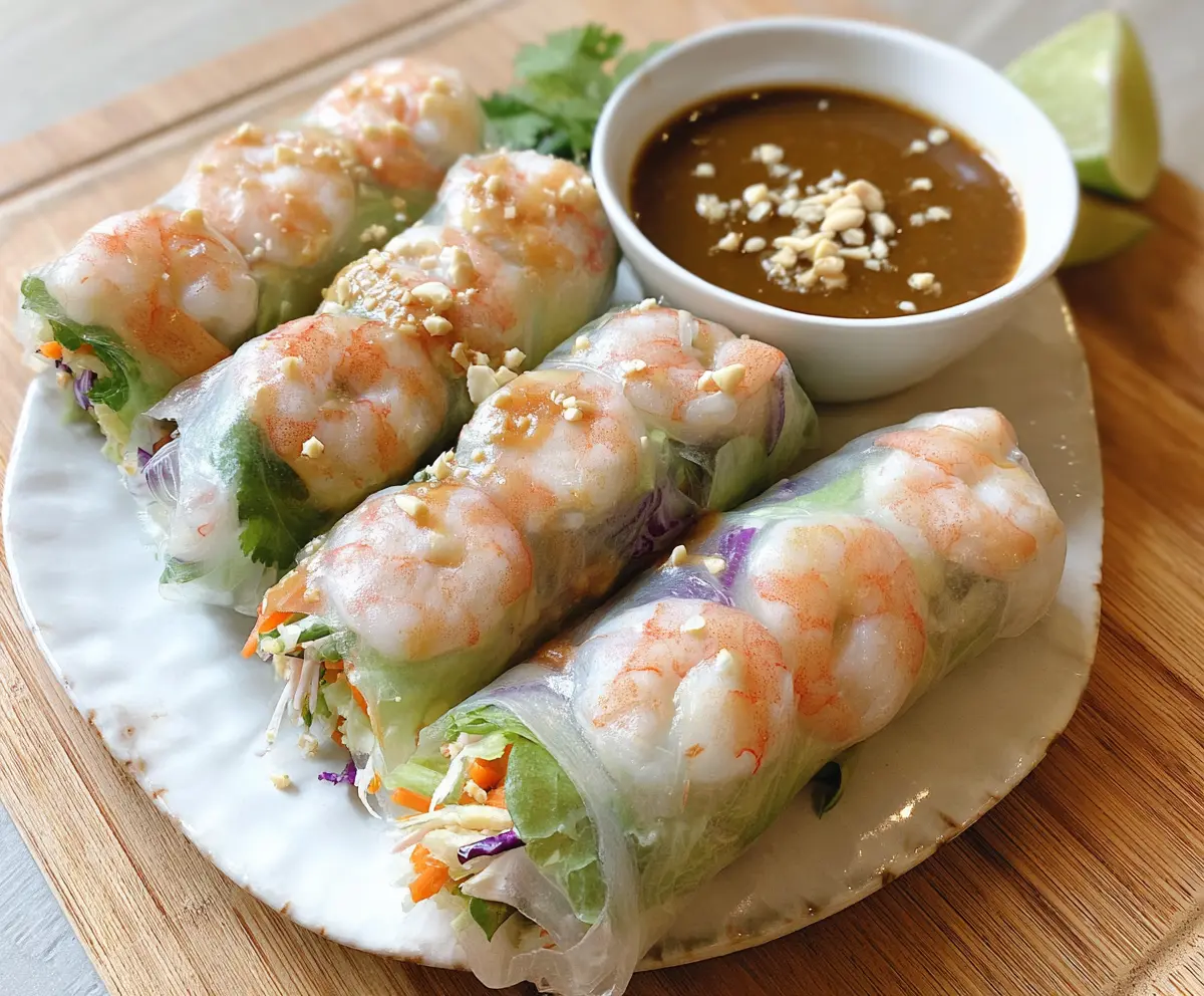 These spring rolls are not just visually exciting with shrimp, fresh vegetables, and peanut sauce; they are full of flavor and nutrients. Dive in and savor every bite!