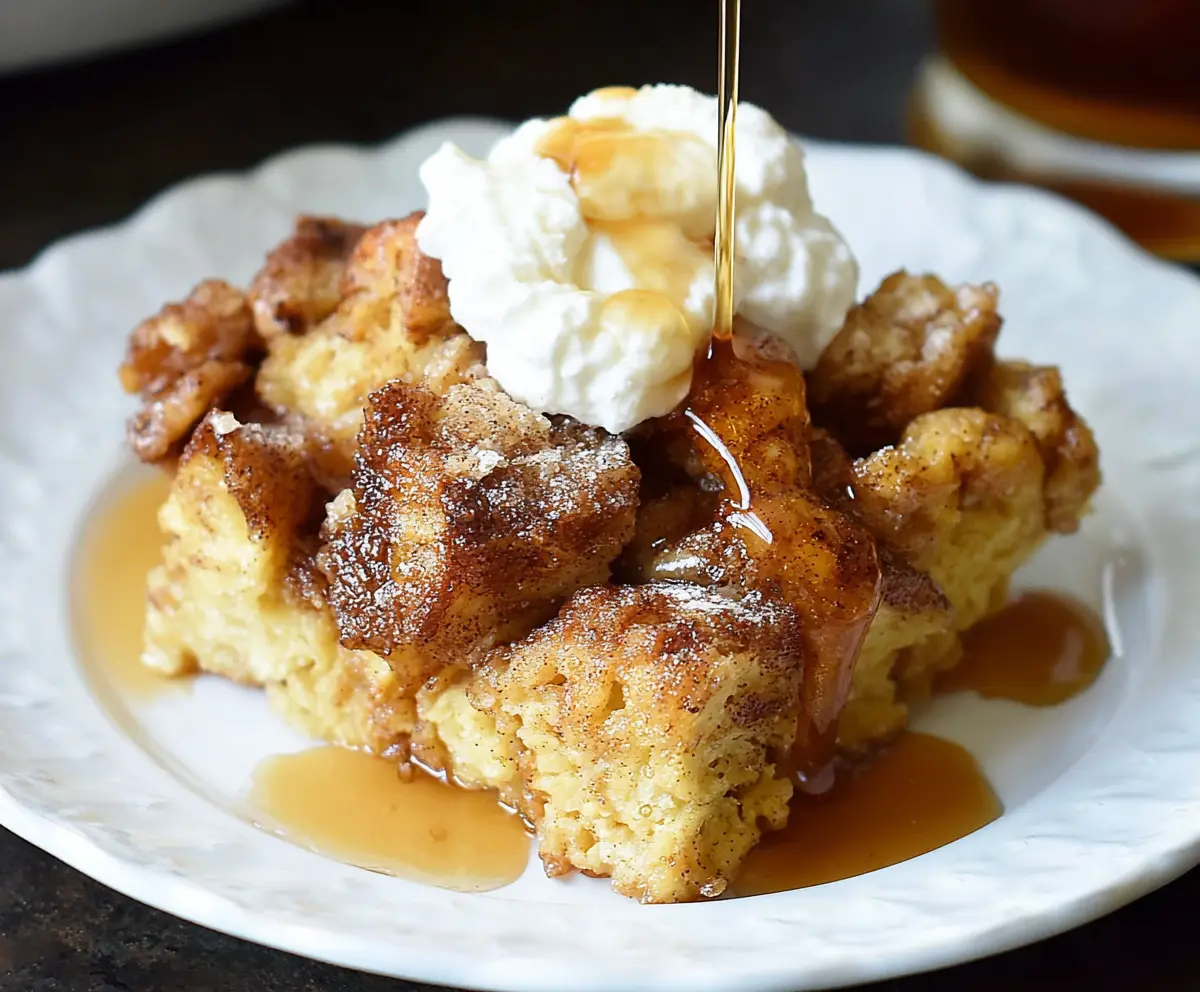 To serve, spoon a generous portion onto each plate. Top with fluffy whipped cream and drizzle with warm maple syrup for a delightful finish!