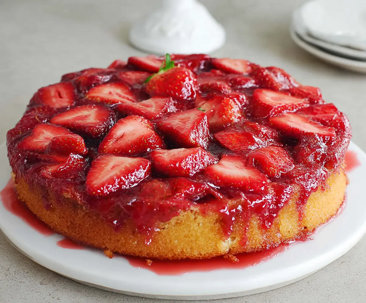 Let the cake cool for a few minutes before flipping it. This step helps the caramel layer to firm up a bit, making it easier to serve without losing all that strawberry goodness.