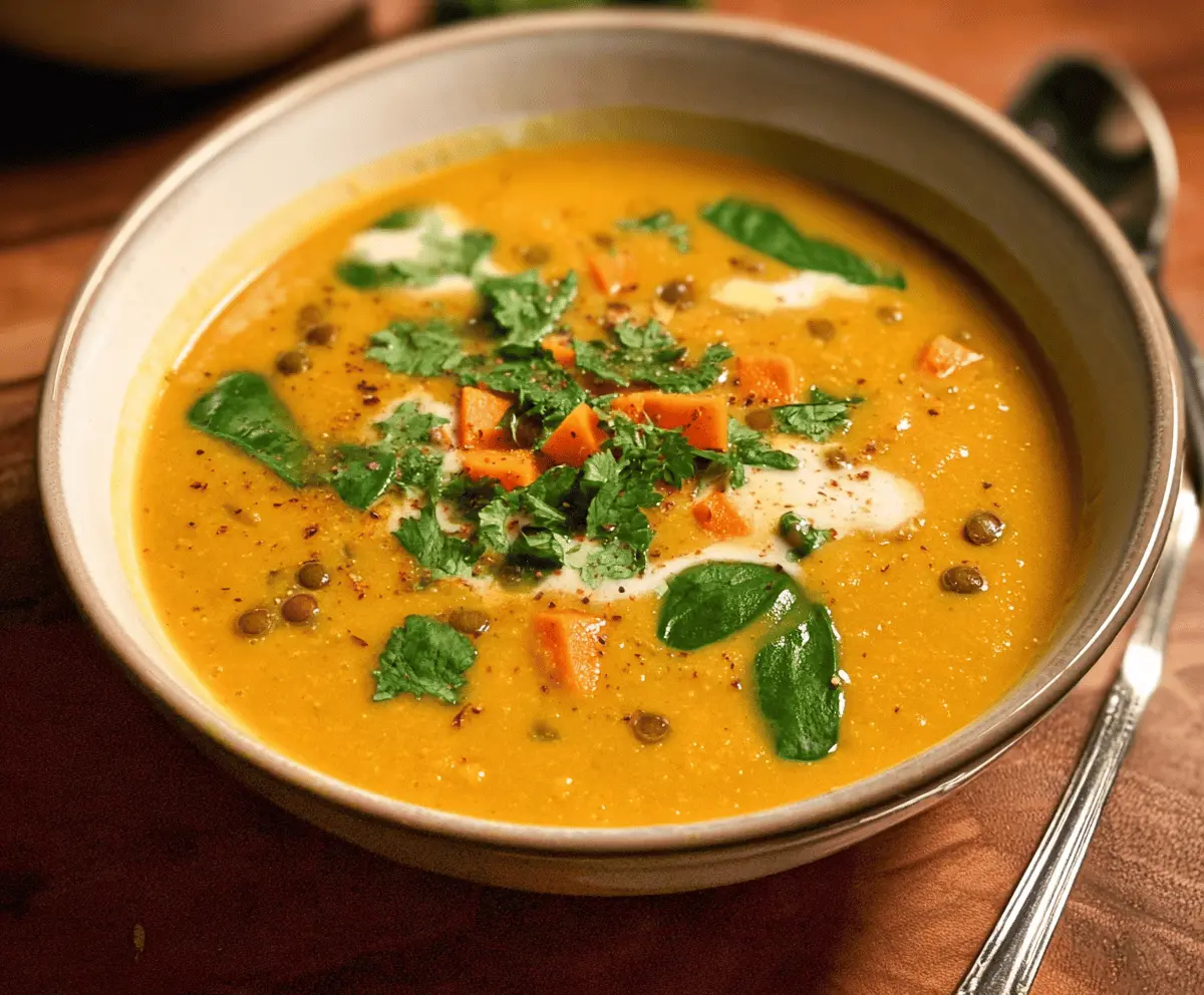 It’s time to serve! Ladle the soup into bowls and garnish with fresh spinach or cilantro, and if you’d like, a dollop of sour cream or yogurt on top. For those who enjoy a kick, sprinkle some red pepper flakes or freshly ground black pepper. Enjoy your delightful bowl of Sweet Potato Curry Soup!