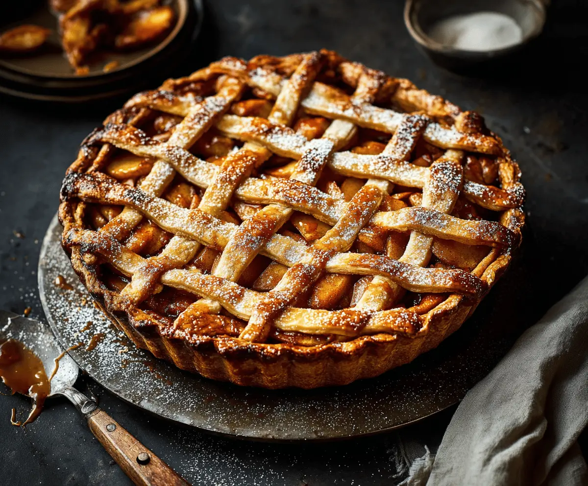 Enjoy your delightful Toffee Apple Pie, a comforting dessert with a sweet toffee twist!