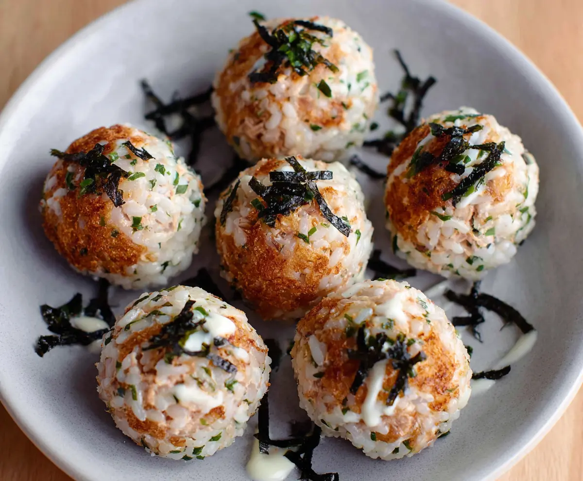 Store any leftover rice balls in an airtight container in the fridge for up to 2-3 days. To reheat, use an oven or air fryer to restore their crispiness, instead of microwaving, which can make them soggy.