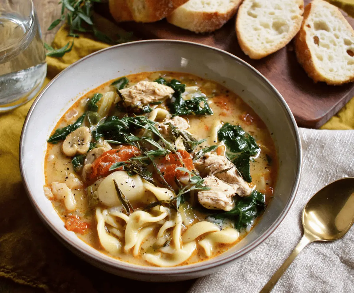 Tuscan Chicken Soup is a warm and hearty dish, filled with tender chicken, colorful veggies, and tasty herbs. It’s like a comforting hug in a bowl!