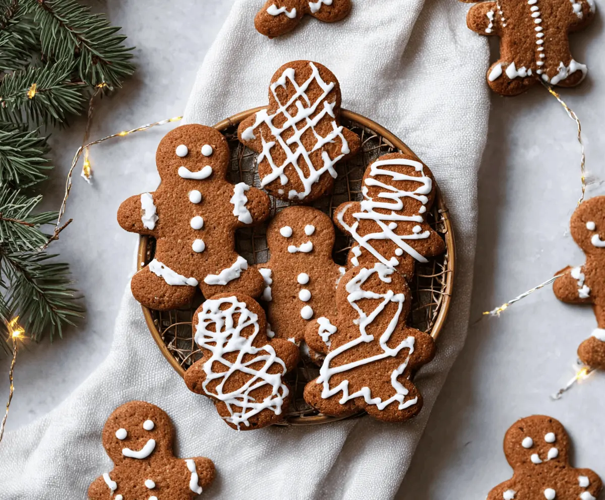 Enjoy your festive vegan gingerbread cookies that are perfectly spiced and beautifully decorated! They are sure to be a hit during the holidays! 🎄✨