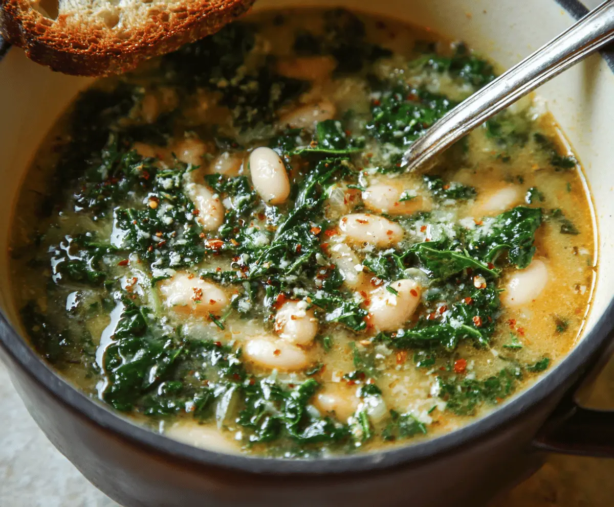 This warm and cozy white bean and kale soup is packed with flavors! The creamy beans mix with fresh, healthy kale to make a tasty dish that’s good for your body and soul.