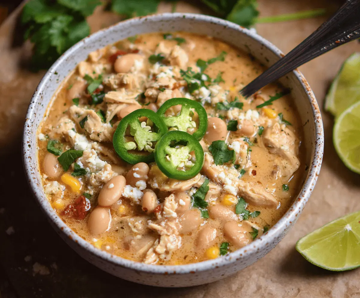 This tasty white chicken chili is creamy and packed with flavor! Made with tender chicken, white beans, and a hint of spice, it’s sure to warm you up on chilly days.